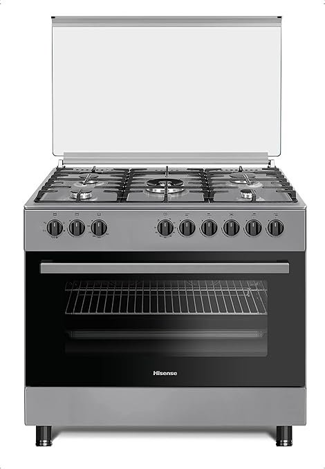 Hisense 90*60cm 4 Gas Burners + 2 Electric Plates Freestanding Cooker with Electric Oven, Grill, Rotisserie, Timer, Safety Cut-off, HF942GEES