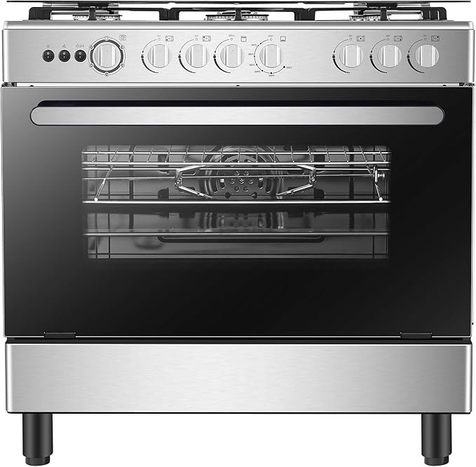 Hisense HGI9B21S, 90 cm Freestanding Gas Cooker With Dual Fan, 105 Liters Multifunction Oven, Cast Iron Pan Support, One Hand Ignition, Stainless Steel