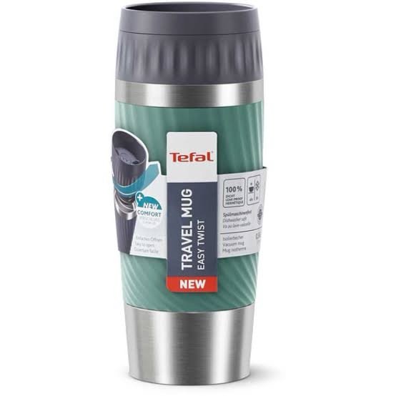 TEFAL 0.36L Thermal Bottle Travel Mug Essential Green, Stainless Steel Essential Double Wall Insulation Keeps Hot Drinks 3 Hours Cool 6 Hours Stainless Steel Silicone Coating Travel, N2021810