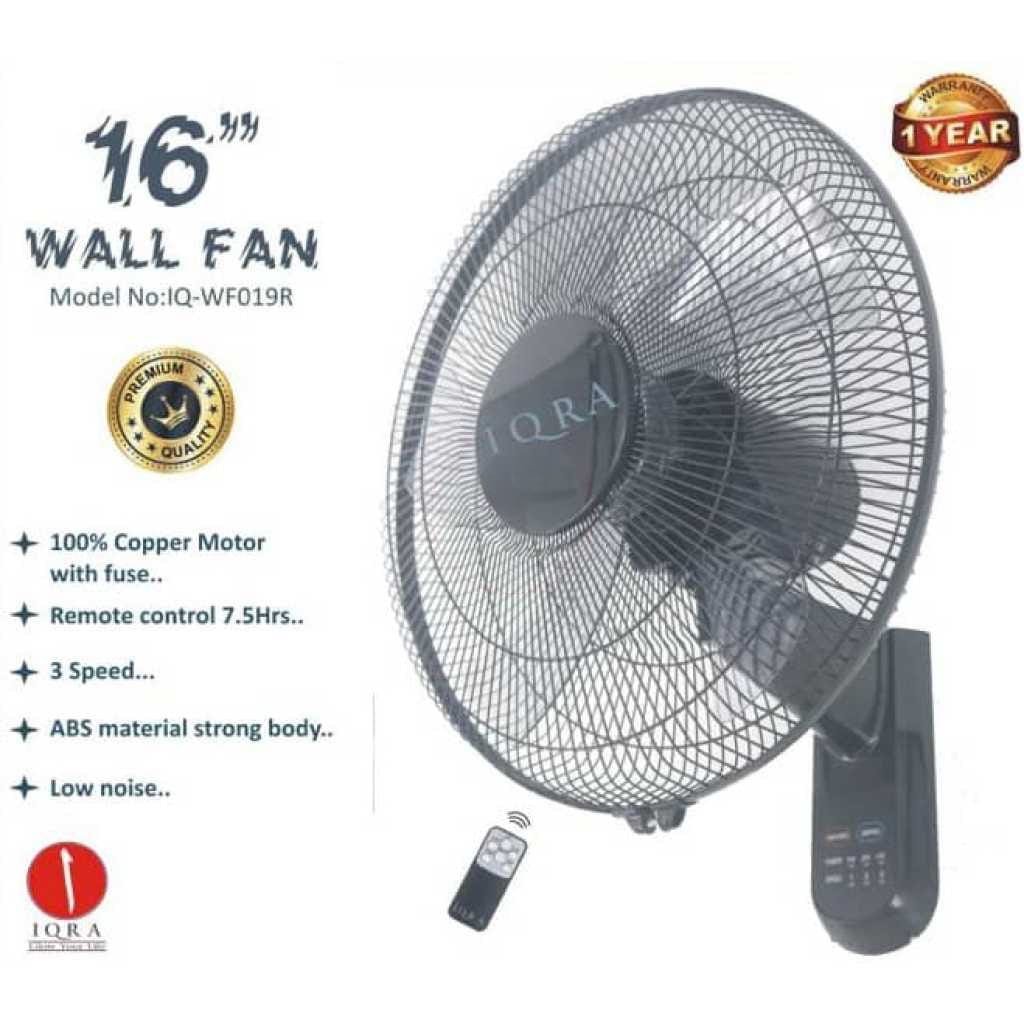 IQRA 16-inch Wall Fan with Remote, 50 watts, 3 Speeds (IQ-WF019R)