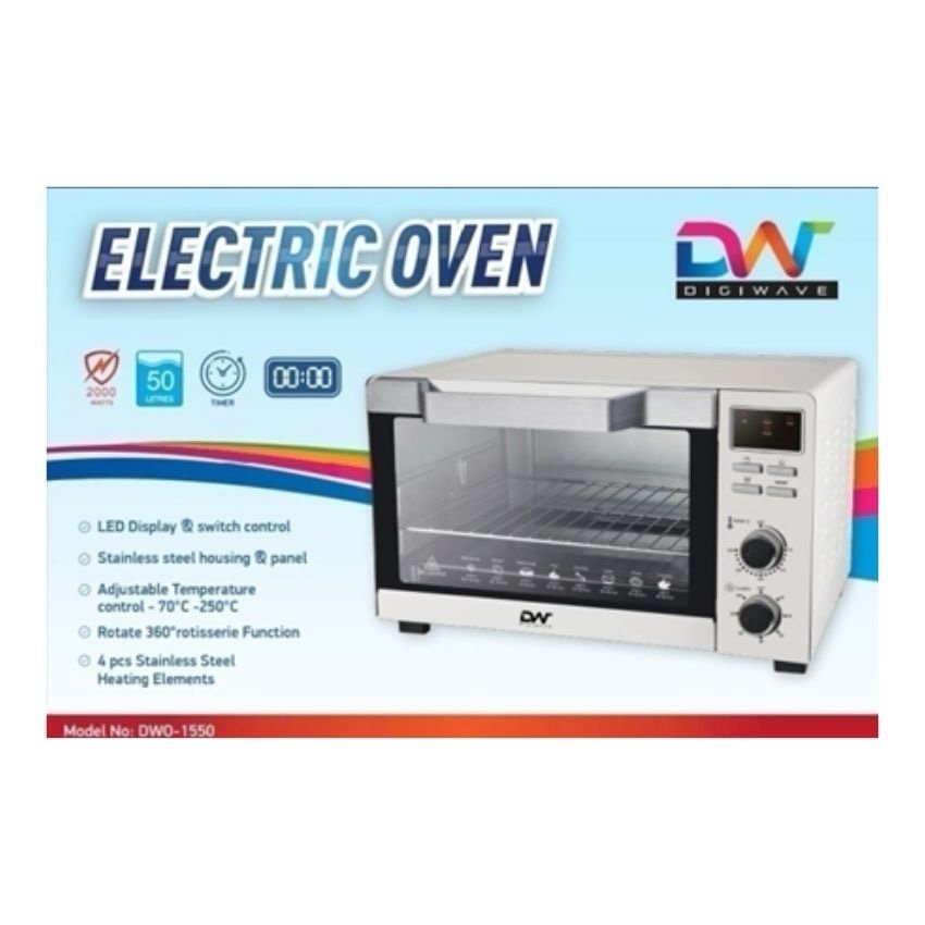 Digiwave DWO1501 Electric Oven 48Ltrs /2000Watts/Adjustable Temperature Control-100*C to 250*C / Rotate 360* Rotisserie Function