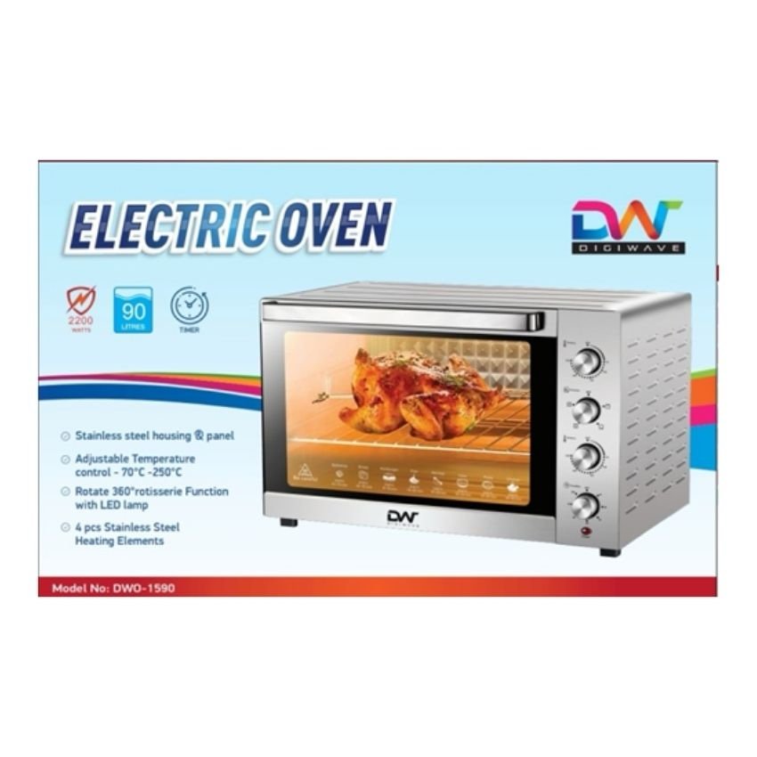 Digiwave DWO1590 Electric Oven 90Ltrs/2200Watts/ Rottessire Bake/Wire Tray/Tray Handle Supplied