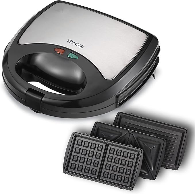 Kenwood Sandwich Maker 3 In 1 Sandwich, Grill/Griddle, Waffle, Dual Plate Press For Toasties, Easy To Use & Clean, Non-Stick Plates, Compact Size Bread Toaster Black/Metal