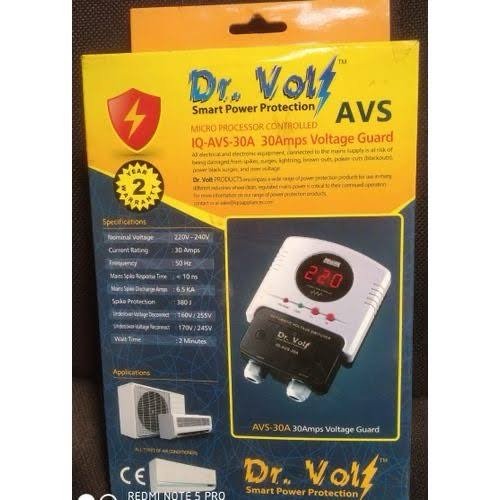 The DR.Volt AVS30 30 Amps AC Guard (IQ‑PG30A) is a professional‑grade power surge protector and automatic voltage switcher designed to safeguard high‑load household appliances — especially air conditioners — from unstable and fluctuating power supply. Built for areas with frequent voltage irregularities, this device helps prevent electrical damage by monitoring mains voltage and disconnecting power when it goes outside safe limits.