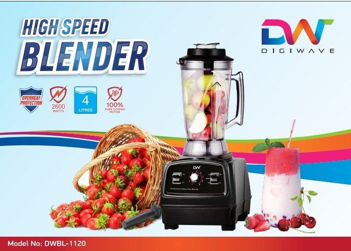 The Digiwave DWBL1120 Commercial Blender is a premium appliance engineered for high-volume blending in both commercial and large-scale home kitchens. With its 4 litre BPA-free jar and 2600 W high-performance motor, this blender handles demanding tasks with ease, delivering smooth and consistent results for all your blending needs.