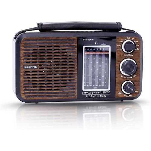 Geepas GR6836 8-Band USB- DC Compatible Radio – Black & Brown