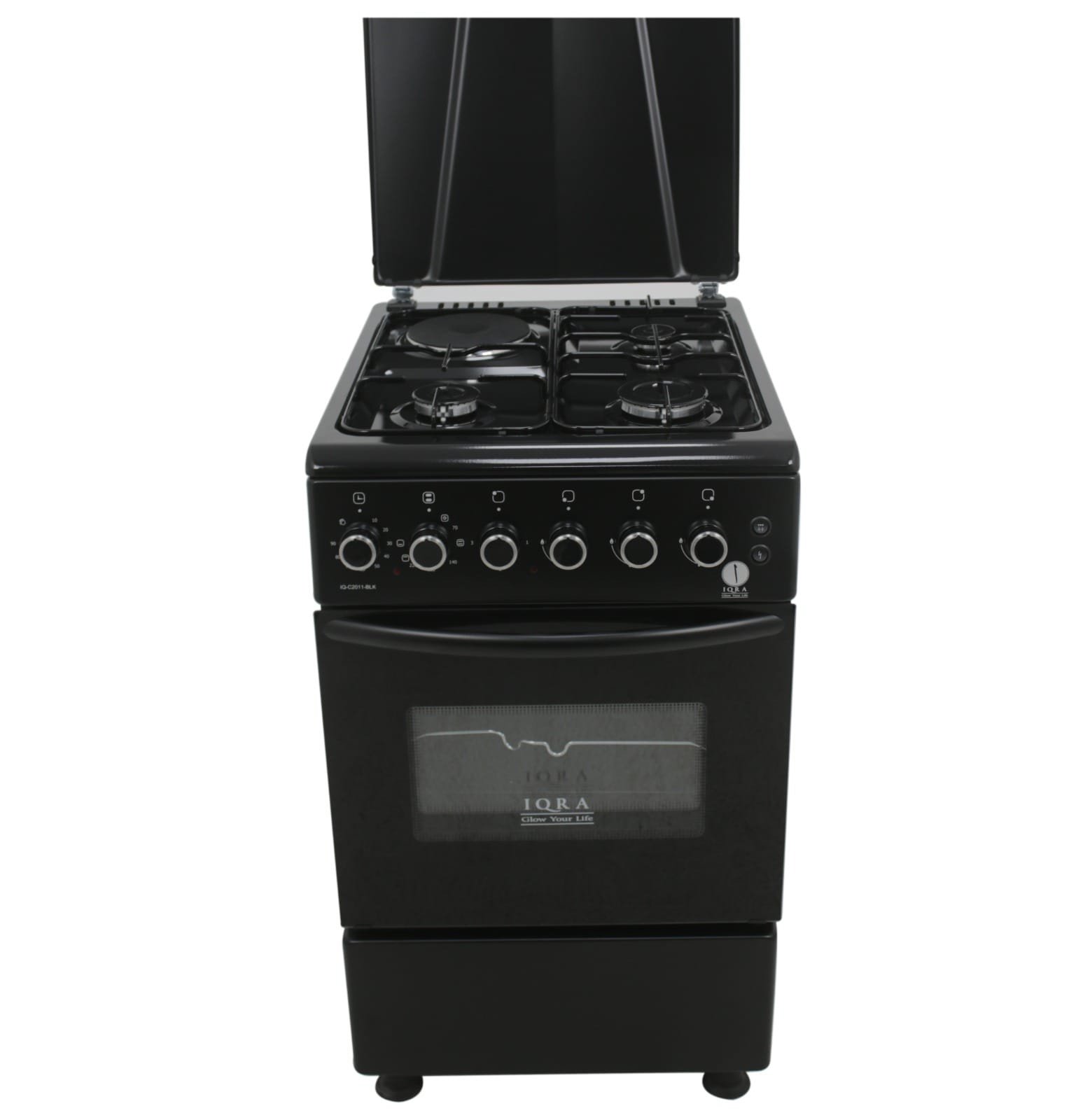 The IQRA 50×60 cm Freestanding Cooker (IQ-C2011-BLK) is a versatile hybrid cooking appliance designed to give you the flexibility of both gas and electric cooking in one compact unit. Its 50×60 cm size makes it perfect for smaller kitchens while still offering full cooking functionality.