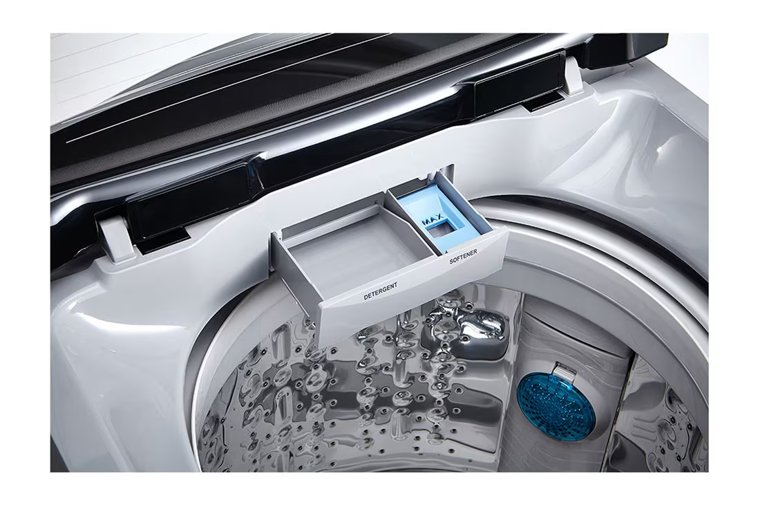 The LG 12kg Top Load Washer with Smart Inverter Motor, TurboDrum™ and Smart Motion combines efficiency, performance, and durability, making it a dependable solution for everyday home laundry.
