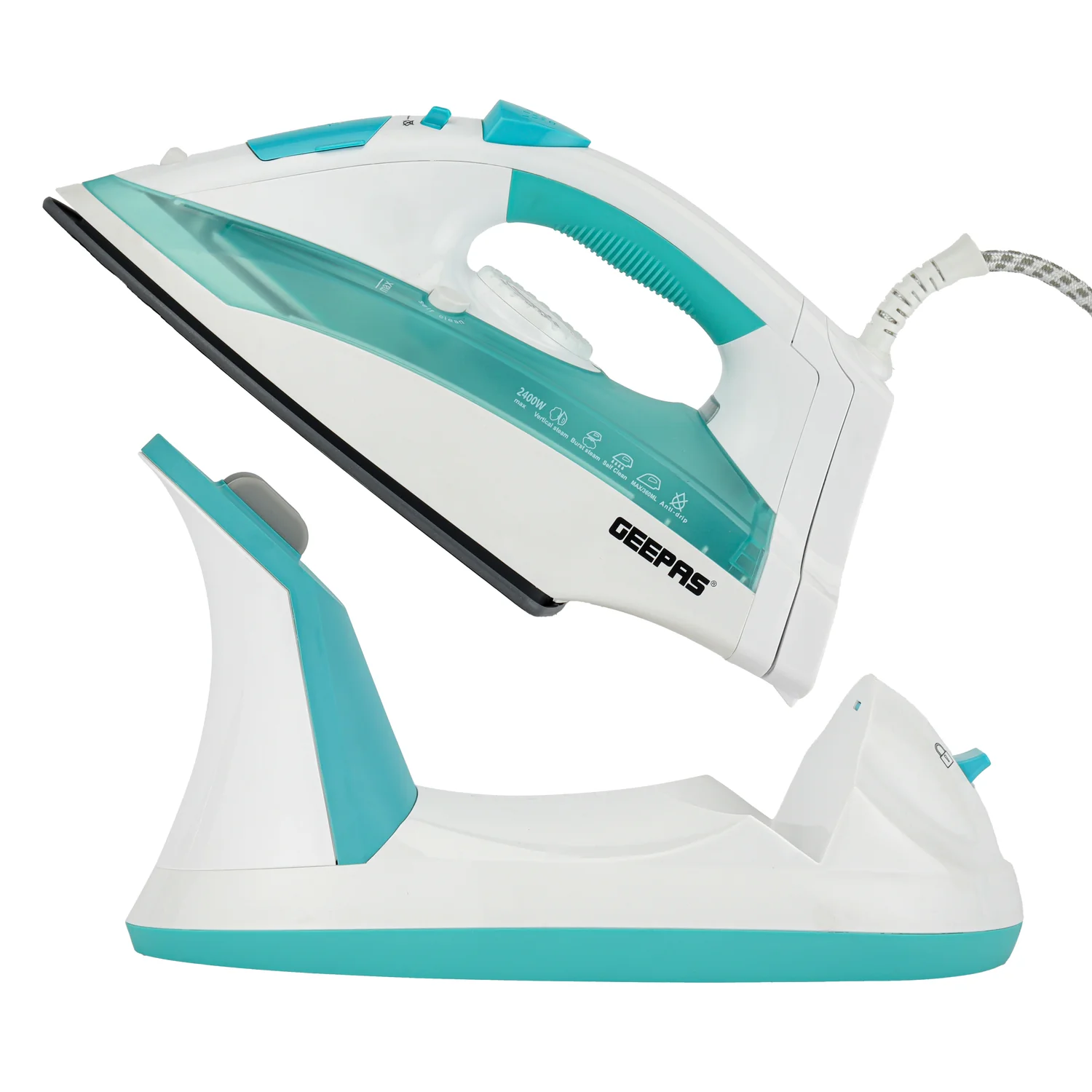 Geepas Cordless/Corded Steam Iron- GSI24015, Wet and Dry Steam Iron Box Handy Design with Powerful Burst Steam, Anti-Drip Function, 1500w