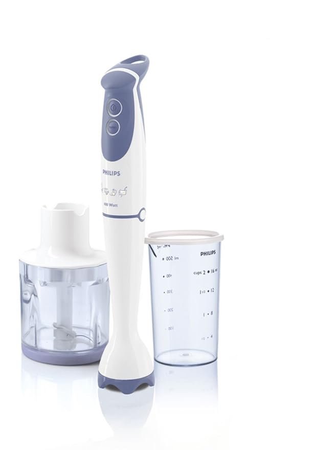 Philips Daily Collection HR1363 600-Watt Hand Blender with Chopper and Beaker (White)